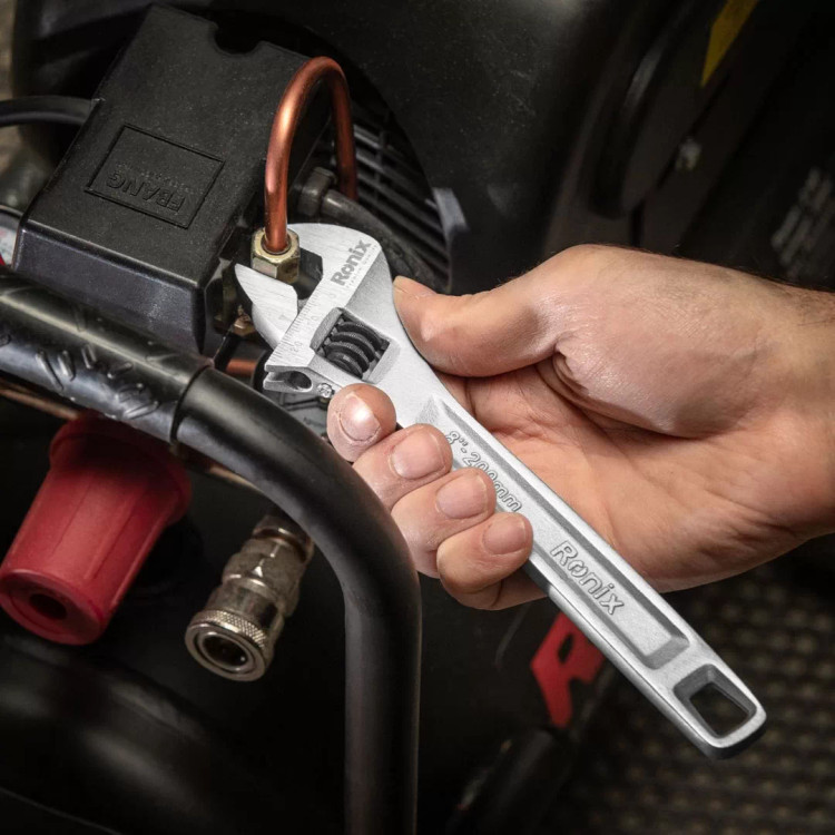 طراحی ارگونومیک این ابزار موجب ایجاد کمترین میزان خستگی میشود. ابعاد این آچار، 8 اینچ معادل 200 میلیمتر بوده و پیچ تنظیم فک متحرک آن از بالاترین دقت و کیفیت برخوردار است. از دیگر ویژگیهای آچار فرانسه 8 اینچ RH-2402 رونیکس میتوان به دسته مقاوم و فکهای قوی آن اشاره کرد.