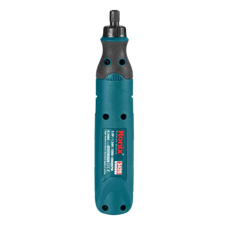 فرز مینیاتوری شارژی 3420 رونیکس، علاوه بر داشتن ویژگیهای یک فرز خوب، شارژی است و امکان جابهجایی آن در محیطهای مختلف برای کاربر وجود دارد. این فرز مینیاتوری به یک موتور DC به ولتاژ 3.6 ولت مجهز شده است که سرعتی بالغ بر 18000 دور در دقیقه را ایجاد میکند.