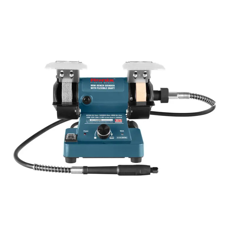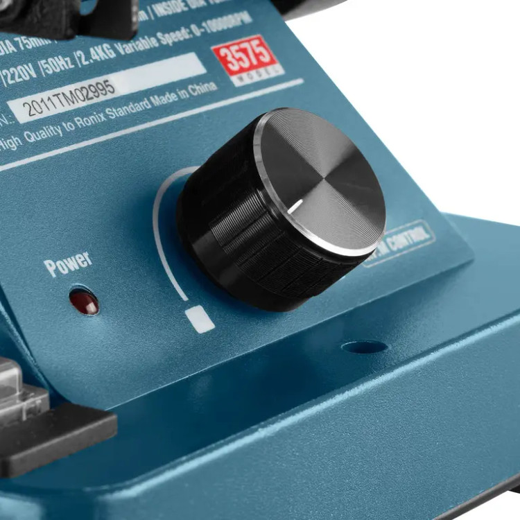 سنگ فرز رومیزی 3575 رونیکس دارای ابعاد کوچک، جمعوجور، کمحجم با یک موتور قدرتمند 120 واتی است. تنظیم سرعت در محدودهی صفر تا 10000 دور بر دقیقه در این ابزار امکانپذیر است. این سنگ فرز، نیازهای مشاغل مختلف مانند صنایع چوب، جواهرسازی، دندانسازی و کارهای فنی خانگی را به خوبی تامین میکند.