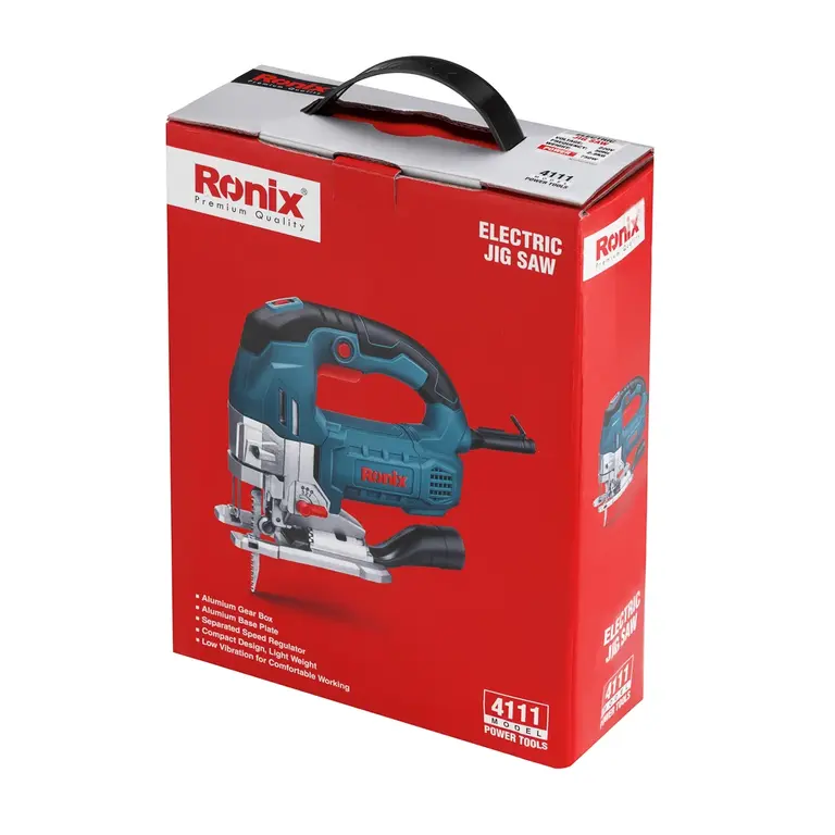 سیستم اتوماتیک تعویض تیغه نیز با هدف کاربری آسان و سریع در این ابزار تعبیه شده است. در اره عمودبر 4111 رونیکس، جریان ایجادشده از دیمر، کلید و برد الکترونیکی به سیمپیچ و کلکتور مسی با درصد خلوص مس بالا میرسد تا دستگاه با توان حداکثری خود شروع به کار کند. اره برقی عمودبر گیربکس فلزی 750 وات رونیکس با مدل 4111، از لحاظ تمام ویژگیها و کاربردها، همرده سوپربرندهای جهانی طراحی و تولید شده است.
