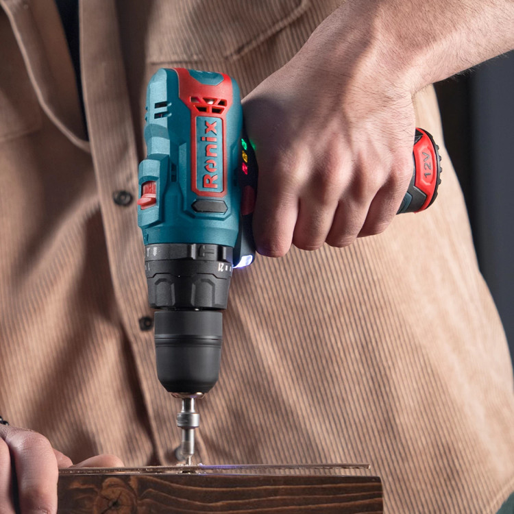 دریل پیچ گوشتی شارژی 8101K رونیکس، از یک سه نظام اتوماتیک دو تکه، بدنه با طراحی کمحجم، ارگونومیک و مقاوم، گیربکس دو سرعته و ترکمتر 1+1+21 حالته بهره میبرد. در این ترکمتر، 21 حالت برای پیچکاری، یک حالت برای سوراخکاری و یک حالت برای سوراخکاری چکشی در نظر گرفته شده است. ابزارهای شارژی سری 81 رونیکس، All in One هستند و با داشتن یک باتری 12 ولت 2 آمپر ساعتی میتوانید از تمام آنها استفاده کنید.