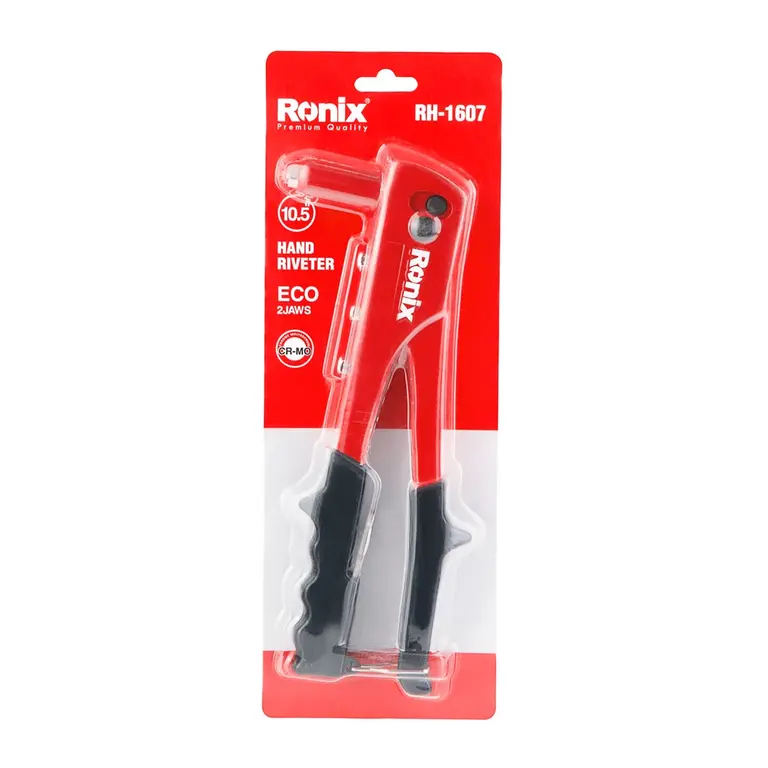 انبر پرچ RH-1607 رونیکس یکی از ابزارهای دستی این برند برای انجام پرچکاری است و از بدنهای محکم از جنس فولاد A3 برخوردار است. پرچکاری، ساخت ناودان، مبلمان و ... همگی مواردی هستند که میتوانید برای انجام آنها از این محصول استفاده کنید. پرچهای 2.4، 3.2، 4.0 و 4.8 میلیمتری با این محصول قابل پرچکاری هستند.