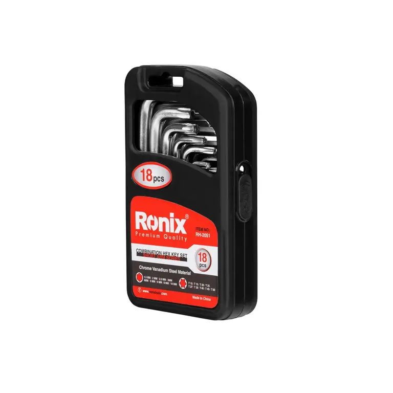 محصول RH-2051 رونیکس ابزاری کامل و کار راه بنداز است. مجموعهای 18 عددی متشکل از 9 آچار آلن شش گوش و 9 آچار آلن ستارهای.