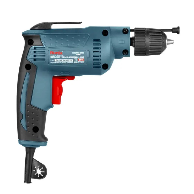 دریل برقی 2115 رونیکس، با یک موتور پرقدرت 420 واتی کار میکند و مجهز به آرمیچر و بالشتکهای صنعتی با کیفیت ساخت فوقالعاده بالا است. در نتیجه، مداومت کاری دستگاه بیشتر شده و قدرت سوراخکاری آن دوچندان میشود. دریل برقی 2115 رونیکس، مجهز به سه نظام مستحکم، 10 میلیمتری و اتوماتیک است؛ برای تعویض مته نیازی به آچار ندارد و همین موضوع تاثیر شگرفی بر سرعت کار با آن میگذارد. این ابزار برقی کاربردی، با برخورداری از اهرم چپگرد/راستگرد میتواند در کنار عملیات دریلکاری برای پیچکاری هم مورد استفاده قرار میگیرد.